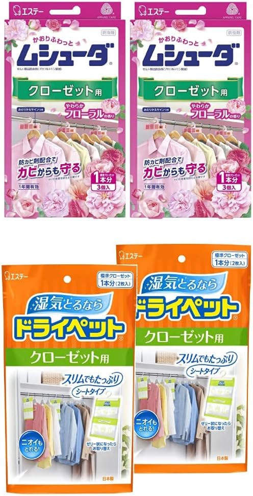 【防虫剤(ムシューダ)と除湿剤(ドライペット)を一緒に使うと効果的】衣替えセット販売品です。