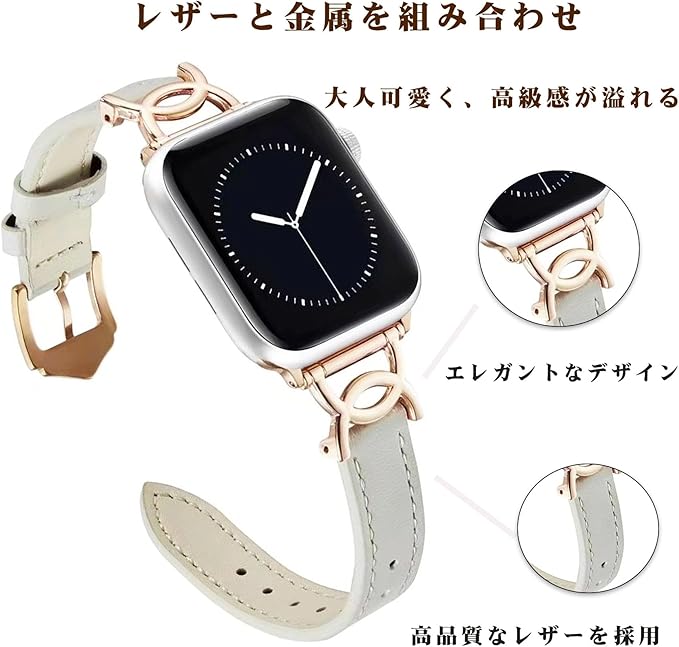 【新しいデザイン】このアップルウォッチ用のバンドは高級感のあるレザーとローズゴールドの金属を組み合わせが大人可愛く、どんなコーディネートにもお使いいただけます。シンプルながらもユニークで知的なデザインはオフィスシーンにもおすすめです。