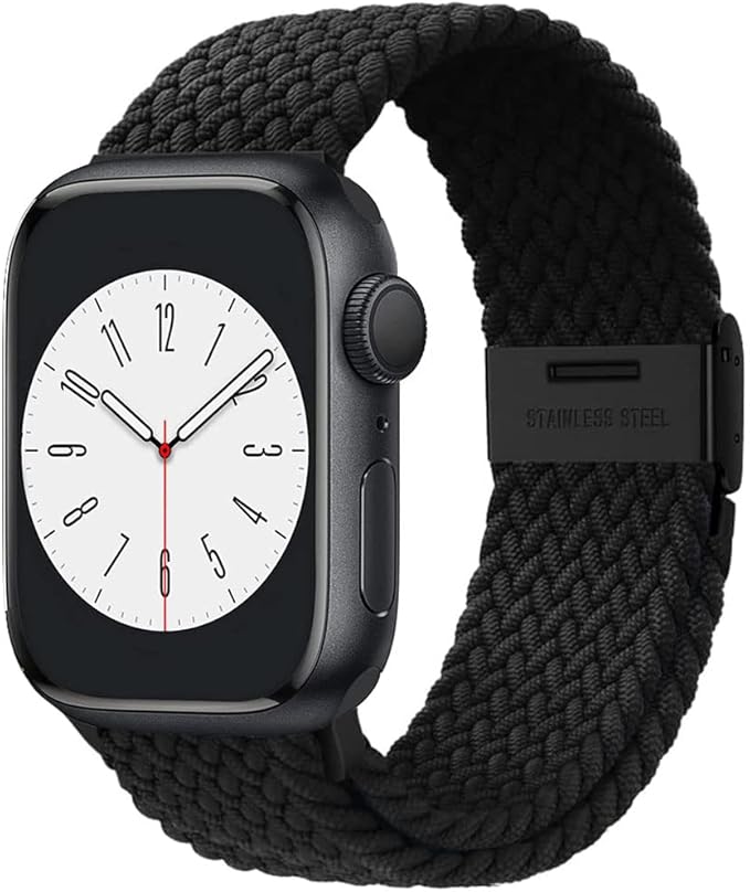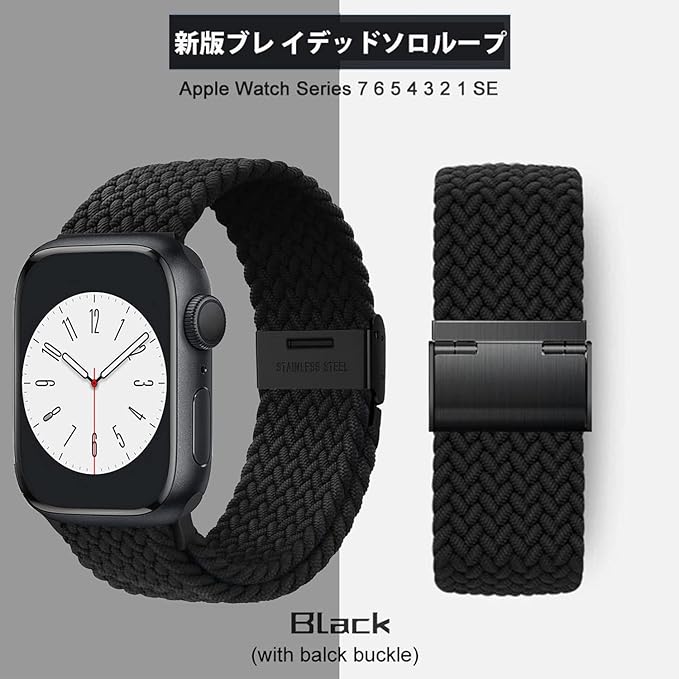 アップルウォッチ バンド Apple Watch バンド 編み込み 42mm(Series 10)/41mm/40mm/38mm 伸縮 調整可能 ソロループ Series Ultra2/Ultra/10/9/8/7/6/SE/SE2/5/4/3/2/1全機種対応 スポーツ ナイロン ベルト (ブラック, 41mm/40mm/38mm)