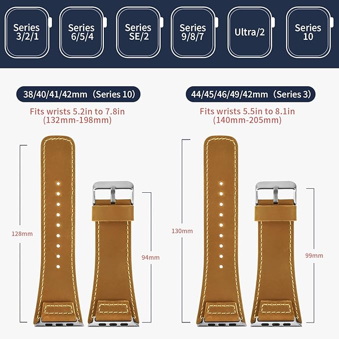 【対応機種】Wristitaniのバンドは、Apple watch series10(42mm/46mm), series 9 series 8 series 7(41mm/45mm), series 6 series 5 series 4 SE (40mm/44mm), series 3 series 2 series 1 (38mm/42mm) and Ultra 2/Ultra (49mm)に対応しています。