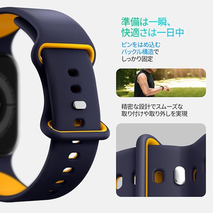 Apple Watch バンド 49/46/45/44mm【 Apple Watch Ultra 2/Ultra/10/9/8/7/6/5/4/SE2/SE対応 】 シリコン素材 ストラップ 通気性 肌にやさしい ナノポップ
