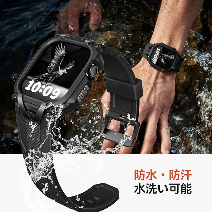 For アップルウォッチ バンド 46mm 45mm 44mm 対応 Series 10/9/8/7/6/5/4/SE2/SE用 コンパチブル Apple Watch バンド カバー一体型 ケース付き TPU製 耐久性・伸縮性に 耐衝撃設計 スポーツ用 軽量で快適 簡単装着
