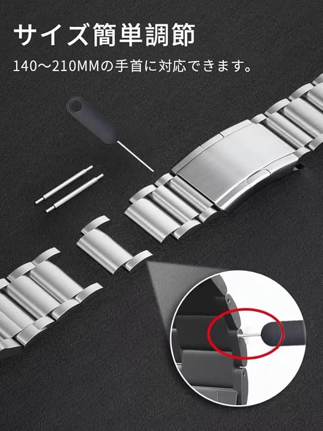 【高品質なチタン製バンド】このバンドはチタンで作られました。チタン製バンドは軽くて丈夫な金属です。また、耐食性が高く、汗や体液に溶け出しにくいため、金属アレルギーはほとんど起こらないです。
