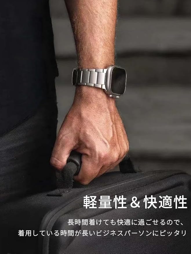 【軽量、ビジネスパーソンにピッタリ】チタンバンドはステンレス製バンドよりも大分軽いです。長時間着けても快適に過ごせるので、着用している時間が長いビジネスパーソンにピッタリです。