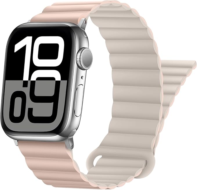HITZEE Band コンパチブル Apple Watch バンド 49mm 46mm 45mm 44mm 42mm 41mm 40mm 38mm 両面ウェアラブルシリコン磁気バンド iWatch Ultra 3/2/1 SE 3/2/1 シリーズ 11 10 9 8 7 6 5 4 3 2 1 に対応(38/40/41/42mm,ピンク/スターライト)