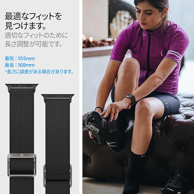 【ソロループで手首にフィット】長さ108mmから最大180mmまでこまめに調整が可能、誰の手首にもフィットします。