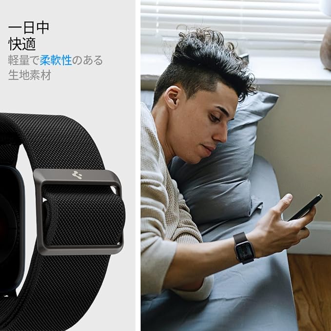 Apple Watch バンド 42/41/40mm【Apple Watch SE3/11/10/9/8/7/SE2/SE/6/5/4 対応】 コンパチブル ファブリック ソロループ 一体型 軽量 速乾 スポーツバンド 柔軟 バンド 腕時計 時計バンド ライト・フィット AMP02290 (ブラック)