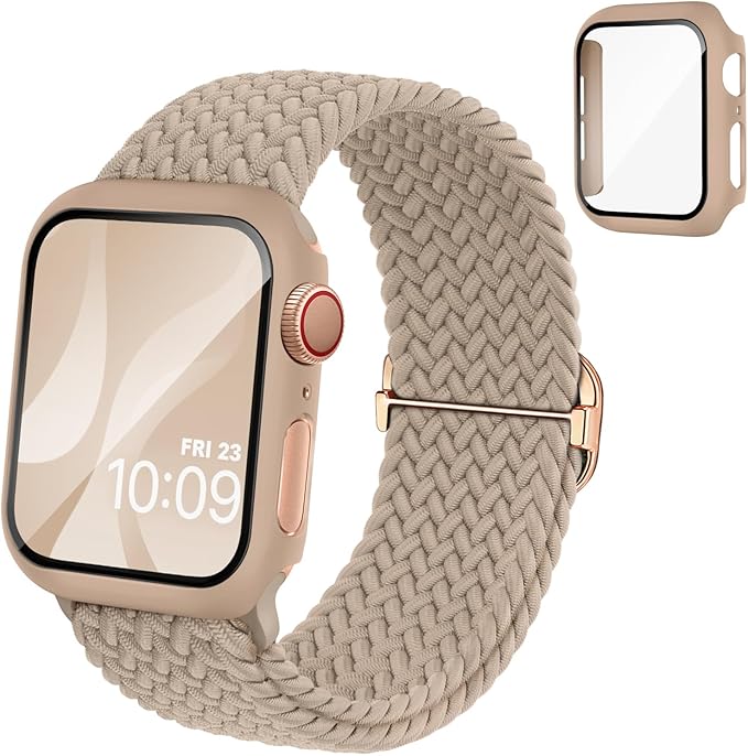 コンパチブル Apple Watchと互換性のあるバンド 編みナイロン製 アップルウォッチ用バンド 保護カバー付き アップルウォッチ向けのスポーツバンド 互換用のApple Watch バンドとケース 一体型 耐衝撃 全面保護 装着簡単 Series 9 8 7 6 5 4 3 2 1SEアップルウォッチ バンド 編み込み40mm 41mm 44mm 45mmに対応レディース