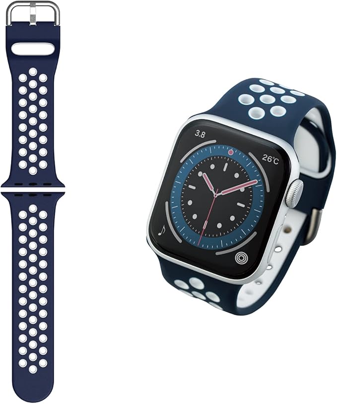 エレコム Apple Watch (アップルウォッチ) バンド 41mm 40mm 38mm [Apple Watch 8 7 SE2 SE 6 5 4 3 2 1 対応] シリコン アクティブタイプ 通気穴 ネイビー ホワイト AW-40BDSCNNV