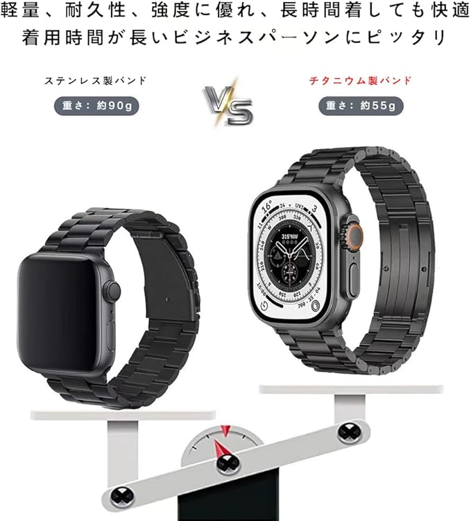 【軽量】チタン製アップルウォッチ バンドはステンレス製のバンドより随分軽く手が疲れません。長時間着けても快適に過ごせるので、着用している時間が長いビジネスパーソンにピッタリです。
