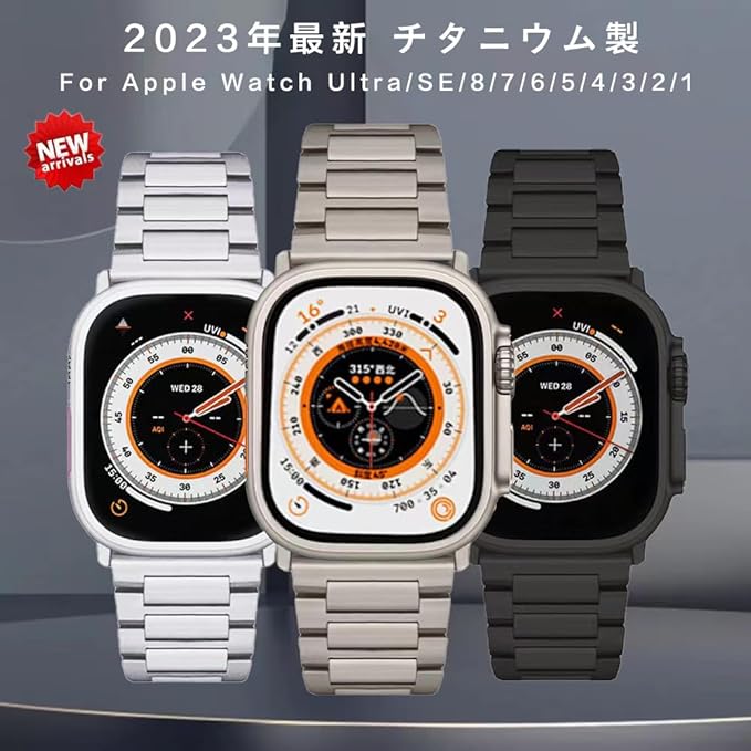 for Apple watch バンド チタン製互换ベルト コンパチブル Apple watch series Ultra3/Ultra2/Ultra/10/9/8/7/6/5/4/3/2/1 38mm 40mm 41mm 42mm 44mm 45mm 46mm 49mmに対応 アップルウォッチ バンド 軽量 耐久性 調節工具付き