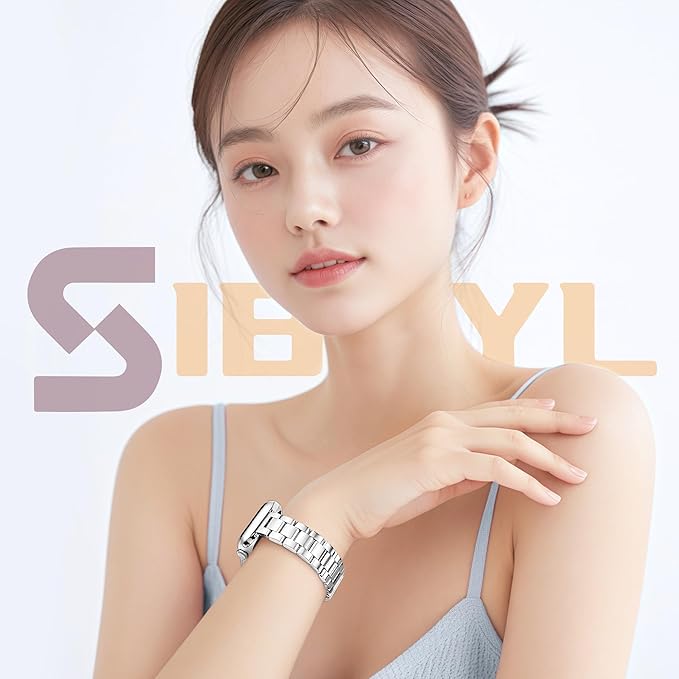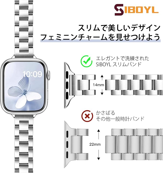 [SIBOYL] い細いステンレス対応アップルウォッチ バンド レディース 42mm(Series 11 10) 41mm 40mm 38mm、着脱が簡単、超古典的ファッションコンパチブルApple Watch バンドステンレス 、かわいいあっふウォッチバンド対応のアップルウォッチベルト夏 、対応Apple Watch 11 10 Se 9 8 7 6 5 4 3 2 1-シルバー