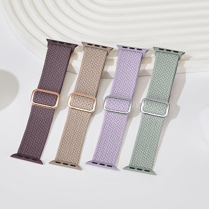 【4枚入り】Suitisbest コンパチブル アップルウォッチ バンド 編み込み 49mm 46mm 45mm 44mm 42mm Apple Watch ナイロンバンド 伸縮性 ゴム アップルウォッチ スポーツバンド Ultra 2 1 Series 10 9 8 7 6 5 4 3 2 1 SEに対応 長さ無段階調整 柔軟 通気 防汗