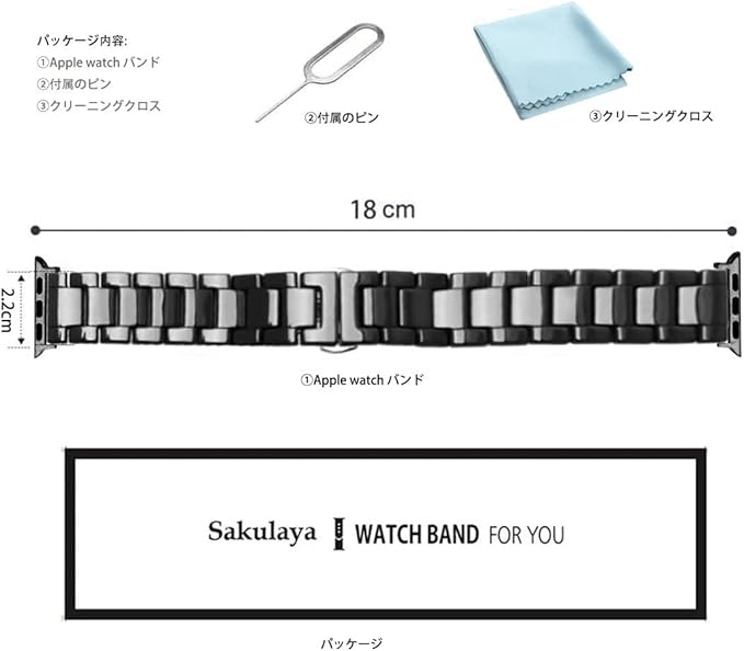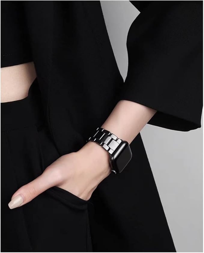 [Sakulaya] Apple Watch バンド セラミック製 アップルウォッチ バンド 長さ調整簡単 Apple Watch Series 9 8 7 6 SE Series 5 45mm/44mm/42mm 対応(ブラック (45mm/44mm/42mm)