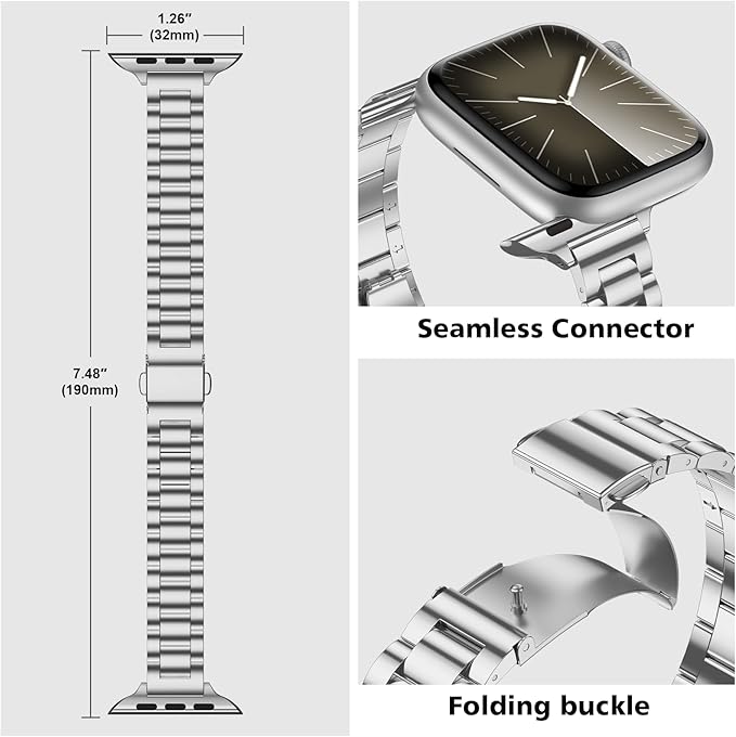 スポーツ バンド と互換性のある Apple Watch Ultraバンド42mm(series10) 41mm 40mm 38mm, ステンレス製 プレミアムステンレススチールメタル交換バンドコンパチブル iWatch Ultra 2 Ultra Series 10 9 8 7 6 5 4 3 2 1 SE に対応 男女兼用,シルバー
