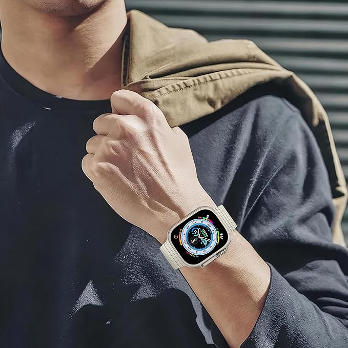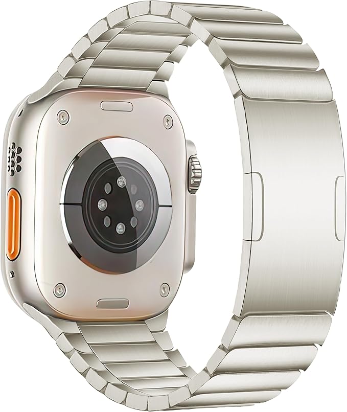 MaKTech チタンウォッチブレスレットバンド 軽量メタル丸角リンクストラップ 埋め込みバックル付き Apple Watch 10/9/Ultra 2/SE/8/7用[2024]