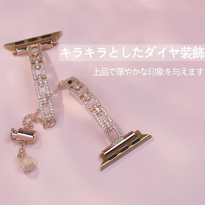 [SUGARSII]アップルウォッチ バンド レディース 細身 華やか キラキラ お洒落 工具不要で長さ調節 42mm(Series 10) 41mm 40mm 38mm Apple Watch ベルト ブレスレット iwatch Se 9 8 7 6 5 4 3 2 1に対応 交換用バンド