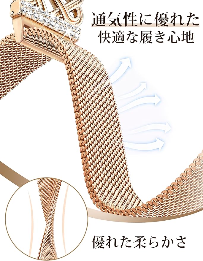 スリムなデザイン&軽量:驚くほどスリムなデザインで、幅はわずか14mm、重さは52g。まるで軽い羽のように、このApple Watchバンドは手首を優しく包み、言葉では表現できないエレガンスを放ちます。細身のデザインと軽さが、手首をよりスリムに見せ、長時間の着用でも非常に快適です。