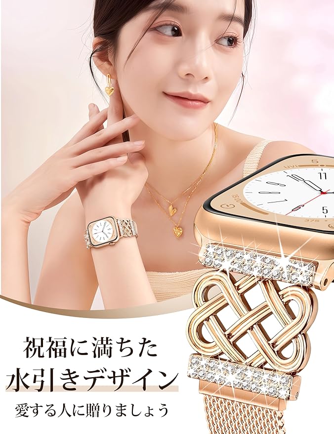 [Bokoios] キラキラアップルウォッチバンドレディース 38mm 40mm 41mm 42mm 44mm 45mm 46mm 49mm、レディース マグネットステンレス、キラキラ apple watch バンド、かわいいapple watch ベルト、アップルウォッチ ベルト可愛い 互换Apple Watch Series 10 SE 9 8 7 6 5 4 3 2 1 Ultra