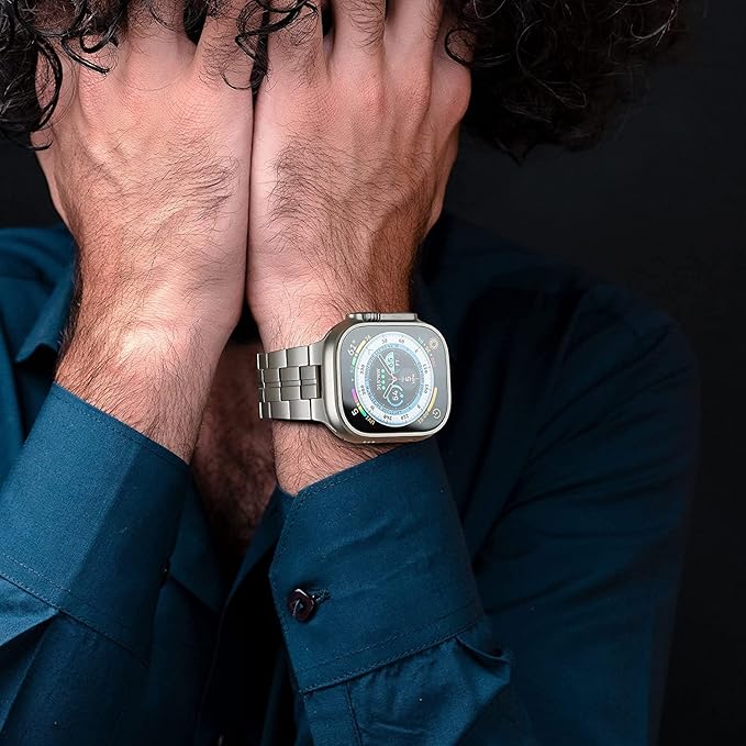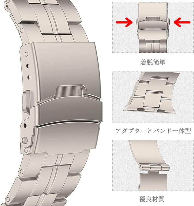 高級チタンバンド Apple Watch Ultra/Ultra 2 49mm専用バンド アップルウォッチ Ultra/Ultra 2 交換バンド Apple Watch Ultra/Ultra 2同じ材質チタニウム(チタン 使用 高級チタンバンド 調節可能 ビジネス風 交換バンド(チタン色/49mm 45mm 44mm 42mm)