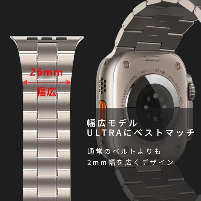 コンパチブル Apple watch バンド チタニウム 幅広 ULTRAモデルにマッチ 軽量 耐久性 apple watch series Ultra2/Ultra 49mm 調節工具付き アップルウォッチウルトラバンド