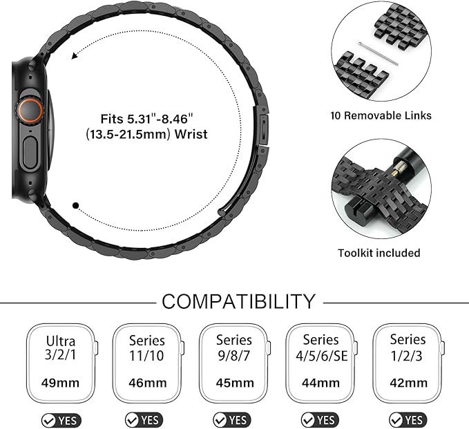 【Apple Watch 幅広い互換性】 Tasikar ステンレス製iWatchバンドは、Apple Watch Ultra 3 Ultra 2 Ultra (49mm),Series 11 Series 10 (46mm),Series 9 Series 8 Series 7 (45mm),SE 3 SE 2 SE (44mm),Series 6 Series5 Series 4 (44mm),Series 3 Series 2 Series 1 (42mm) に完全対応。全てのスタイルのiWatchリストバンドに最適な代替品。