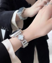 【最新のデザインです】幸運と希望を象徴する幸運の四つ葉のクローバーをデザインにして、天然マザーオブパールの周りに小さなダイヤモンドが飾られており、第一層牛革との相性が抜群で、このストラップをより一層になっています。秋冬のスカートやコートに合わせて着用して、エレガントで優しいイメージを作ります。