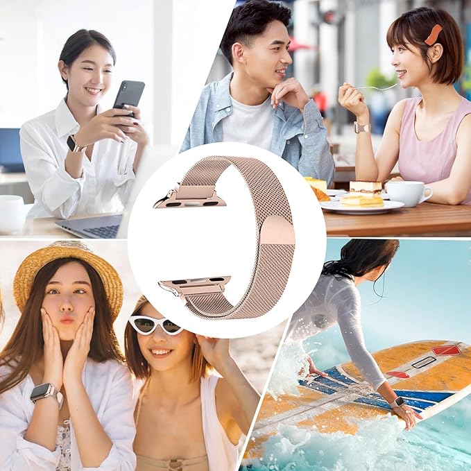 【取り付け簡単】Watch バンドの磁気バックルは強化およびアップグレードされており、通常のウォッチ ベルトよりも強力な磁気グリップを備えており、脱落しません。 同時に、マグネットロックストラップで長さ調節もしやすく、お客様の手首のサイズに合わせて調節できます。