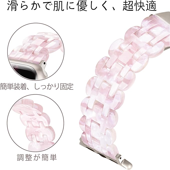 [Bokoios] 互换アップルウォッチ バンドレディース かわいい樹脂ベルト42mm 41mm 40mm 38mm おしゃれ互换Apple Watch バンド スポーツ防水互换アップルウォッチバンド 蒸れない軽いコンパチブルAppleWatch ベルト 調整簡単互换Apple Watch Series 10 SE 9 8 7 6 5 4 3-ピンクの花、スターライトバックル