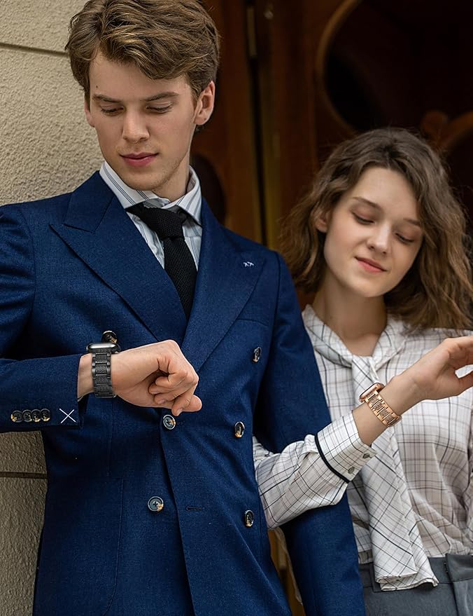 【高品質なステンレス製】プレミアムなステンレススチールを使用したこのバンドは、丈夫でありながら軽量で、長時間着用しても快適です。ブラッシュ仕上げの表面が、高級感を際立たせ、カジュアルな日常使いからフォーマルなシーンまで幅広く対応できます。