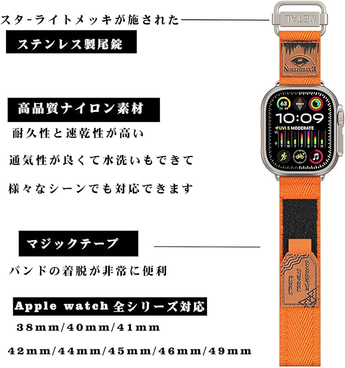 【対応機種】Compatible with Apple Watch Ultra2,Series 10/9/8/7/6/5/SE/4/3/2/1 ナイロン交換バンド!49mm/45mm/46mm/44mm/42mm/41mm/40mm/38mm に対応専用交換バンド。 購入前、時計の背面の刻印サイズを確認してください。 ※ ご注意:Watch本体が付属いません。