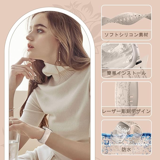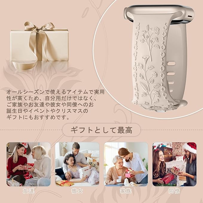 [対応機種・サイズ] 新しいシリコンバンドは女性のために特別にデザインされています。鮮やかな色と上品なスタイルで、どんな服装にもマッチします。Apple Watch Series 11 42mm / 10 42mm / 9 8 7 6 5 4 3 2 1 / SE 3 40mm / SE 2 /SE 全機種に対応できます。 ※本製品はApple watch本体付属いていません(バンドのみです)、ご注意ください