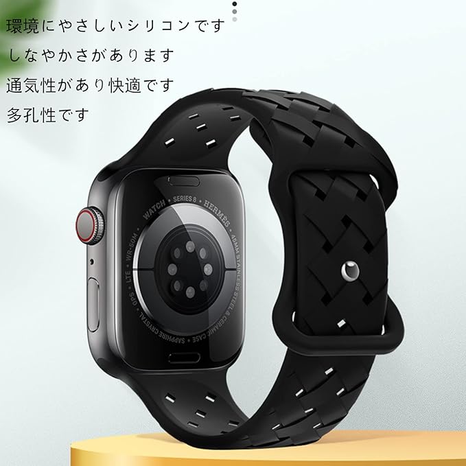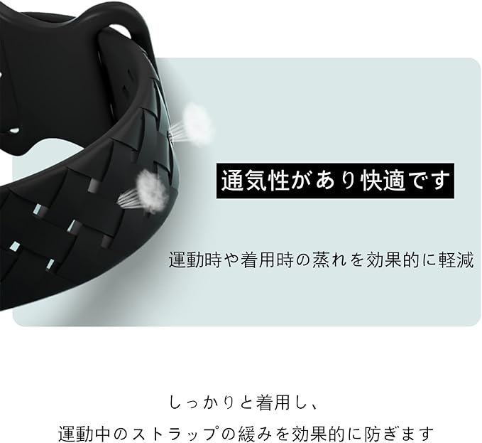 【通気性抜群】apple watchバンドの表面に数個の調整穴があり、防汗、通気性が抜群です。運動するときでも汗をかきにくいし、使い心地が良いです。運動時はもちろん、日常使用における長時間装着にも疲れないです。