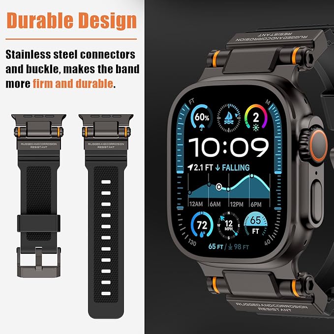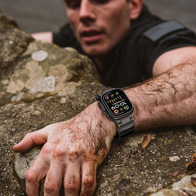 Unique & Bold Design: Farewell to the fixed structure, innovation rotating metal connector design, make sure that the watch strap fits perfectly on your wrist. The metal connectors' color match the Apple Watch Ultra 2/1. The sleek and bold metal accents complement your Watch