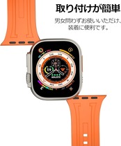 【防水性や汚れに強く、手洗いが可能】多少の汗や汚れも軽く拭き取るだけで、新品同様の状態に戻ります。防水で乾きやすく、耐摩耗性・耐久性に優れており、何度手洗いしても変形しません。ランニング、スイミング、スキーなどのスポーツ向けに特別に設計されており、水に強いApple Watchバンドです。