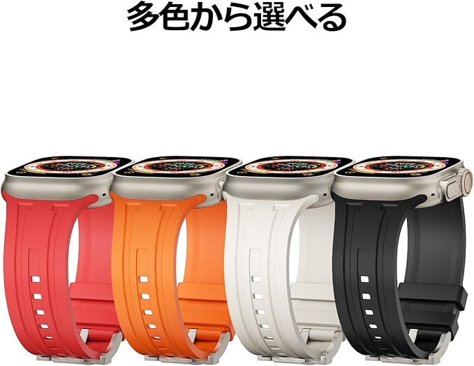 【高品質なフッ素ゴム素材】YOFITARアップルウォッチ用バンドは、希少元素のフッ素原子を導入し、一般的なシリコーンバンドよりも密度が高く、柔軟性があり、防水性が高く、汚れに強いものとなっております。一般的なシリコーンバンドの表面に付着しやすく、汚れに弱く、すぐに傷みやすくなる問題を解決しました。