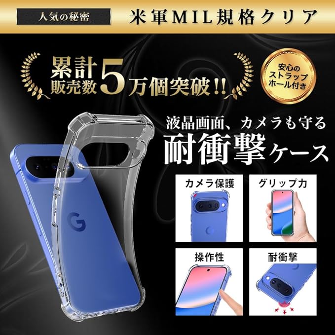 Hy+ Google Pixel10 対応 米軍MIL規格 クリア TPU ソフト 耐衝撃 透明 黄ばみ防止 ストラップホール付 スマホケース