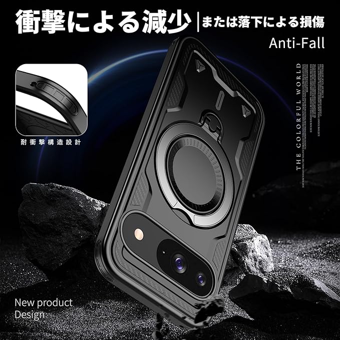 Google Pixel 10/ 10 Pro 用 ケース 耐衝撃 スタンド付き Magnetic対応 グーグルピクセル10/ 10 Pro カバー リング TPU+PC ワイヤレス充電 米軍MIL規格取得 スタンド機能 (黒 ブラックい)117-PX10-01