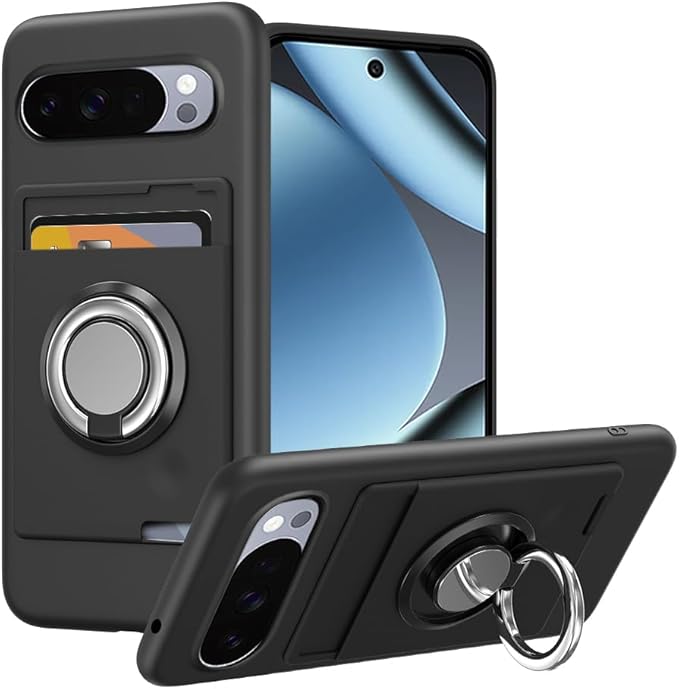 対応 pixel 10 / 10 pro ケース カード収納 リング付き シリコン グーグルピクセル10/10 Pro スマホケース スタンド機能 360 回転リング 耐久 滑り止め 黑