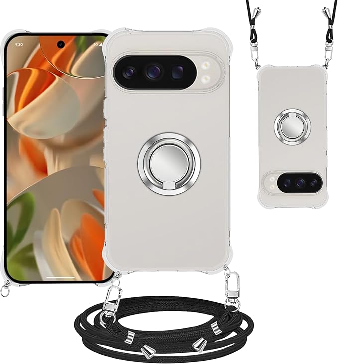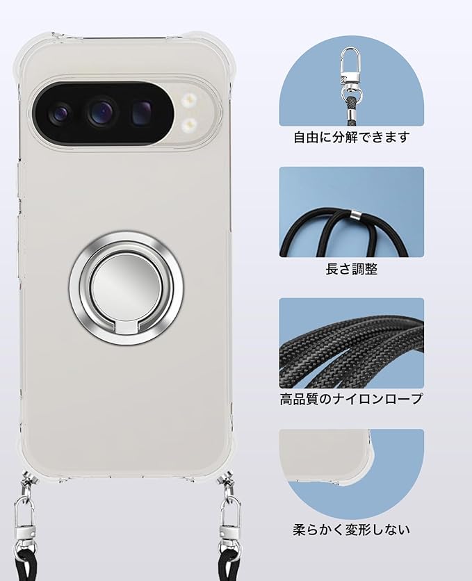 For Google Pixel 10/Google Pixel 10 Pro ケース 全透明 クリア 保護カバー 車載ホルダー対応 YANMONGI リング付き スタンド機能 カバー 首かけ 肩掛け 斜めかけケース エアバッグ スマホケース 耐衝撃 TPU バンパー スクリーン & カメラ保護 落下防止 薄型 軽量 ストラップ付き 取り外し可能 長さ調整可能【クリア】