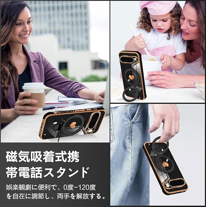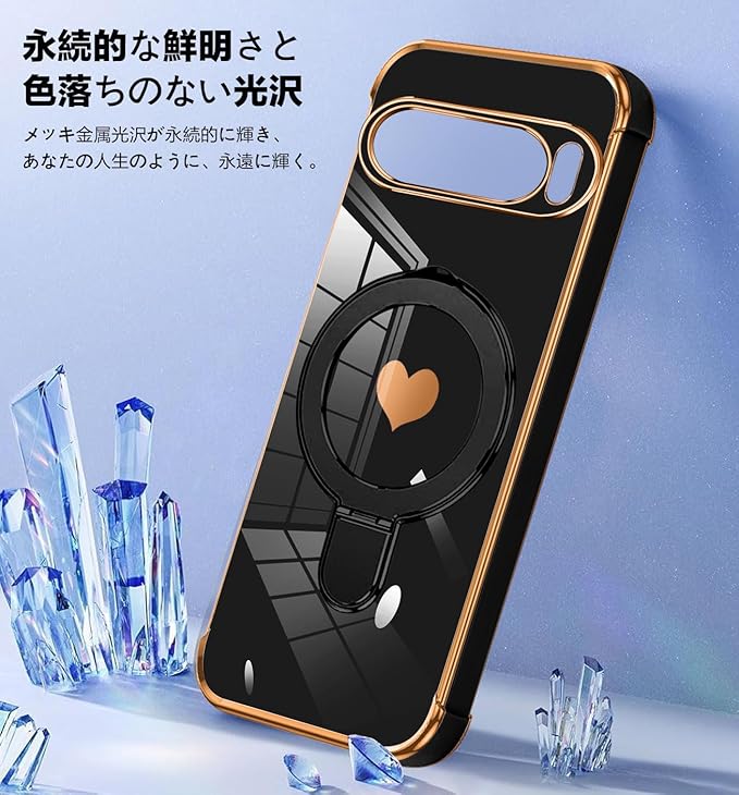 Google Pixel 10 / 10 Pro ケース MagSafe対応 リング スタンド機能 縦横両対応 ワイヤレス充電 レンズ保護 耐衝撃 携帯カバー グーグル ピクセル 10 pro カバー マグネット搭載 車載ホルダー マグセーフ対応 おしゃれ スリムケース ソフト シンプル(ブラック)