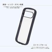 衝撃に強く、フィット感にも優れたハイブリッドケース。 背面は傷に強いポリカーボネート、側面には厚みのあるTPU素材を使用し、安心感のある使い心地を実現しました。 カメラまわりには高さのあるリング設計を採用し、レンズへの接触を防ぎます。 アクセサリーの取り付けに便利なストラップホール付き。