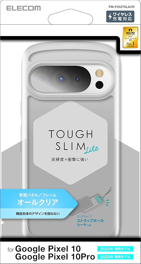 エレコム Google Pixel 10/10 Pro ケース カバー 透明 耐衝撃 衝撃吸収 ハイブリッド TPU ストラップホール付き 軽量 薄型 傷がつきにくい キズ 硬度5H カメラ保護 ワイヤレス充電対応 クリア PM-P252TSLACR