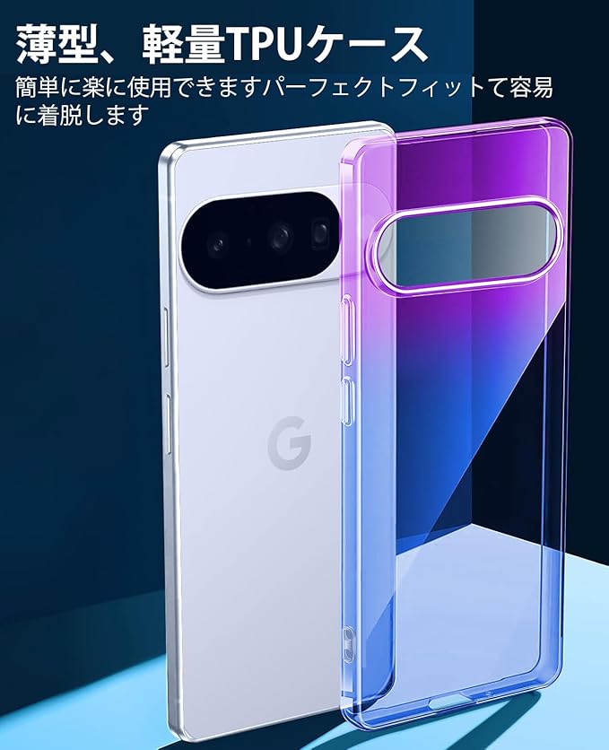 Google Pixel 10/10 Pro ケース クリア 薄型 TPU 耐衝撃 ピクセル10/10proカバー グラデーション色 ケース 黄ばみ防止 擦り傷防止 軽量 人気 スマホケース カメラ保護 ワイヤレス充電対応 パープルブルー