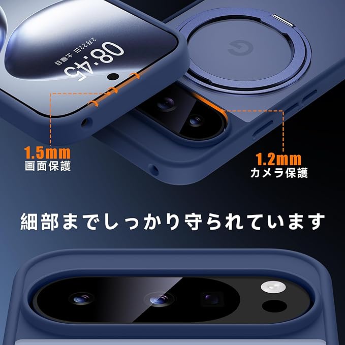 【米軍MIL規格・Magsafe対応】Google Pixel 10 / 10 Pro 用 ケース MagSafe対応 リング 360 回転スタンド機能 縦横両対応 半透明 黄ばみ防止 ワイヤレス充電 レンズ保護 耐衝撃 携帯カバー グーグルピクセル10/10プロ カバー マグネット搭載 車載ホルダー マグセーフ対応 おしゃれ (ブルー)