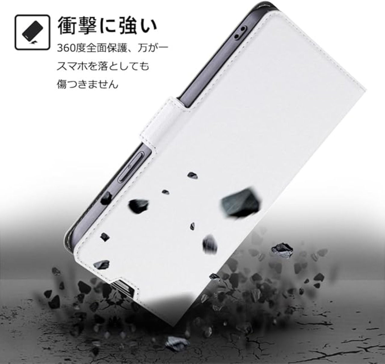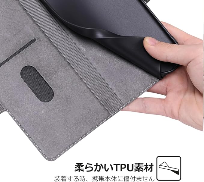 「ソフトケース&耐衝撃」落としても衝撃が軽減されるので画面が割れにくく、持ち運びの際の汚れやキズを防げます。TPU素材のソフト手帳カバーがやわらかく手に馴染み、操作時に安定感のあるグリップを実現しています。