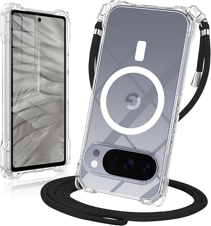 MagSafe対応 Google Pixel 10/10 Pro用 ケースクリア ストラップ ショルダー マグネット搭載 HILEGENERグーグル ピクセル10 プロカバー 縦/横 2WAY肩掛け 斜めかけ純透明 ケース【長さ調整可能 ブラック縄掛け付き】紐付き 斜めがけ 織りスト ネックストラップ ショルダーケース 落下防止 紛失防止(グーグル ピクセル10/10 Pro-クリア)