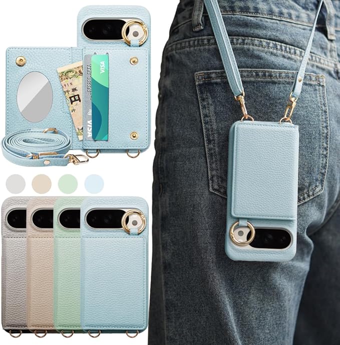 Google Pixel 10 ケース 手帳型 グーグルピクセル10/10Pro ケース 手帳型 適用 Pixel10 スマホケース ショルダーストラップ ぐーくるぴくせる10 pro ケース 人気 かわいい おしゃれ 女性 ピクセル 10 携帯カバー ミラー 鏡 横置き 軽量 スタンド 首掛け 肩掛け 斜めがけ 耐衝撃 カード 現金入れ 収納 シンプル 肌感レザー 保護 スマホカバー(ブルー)