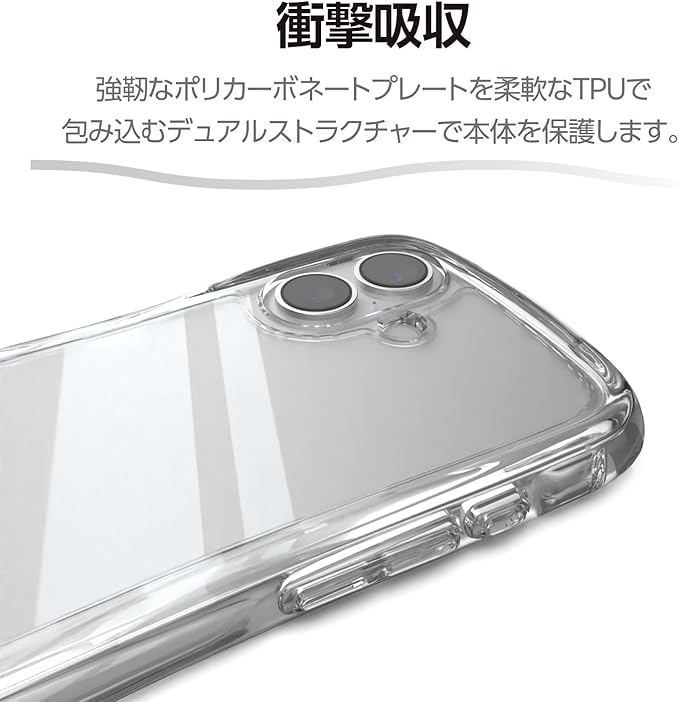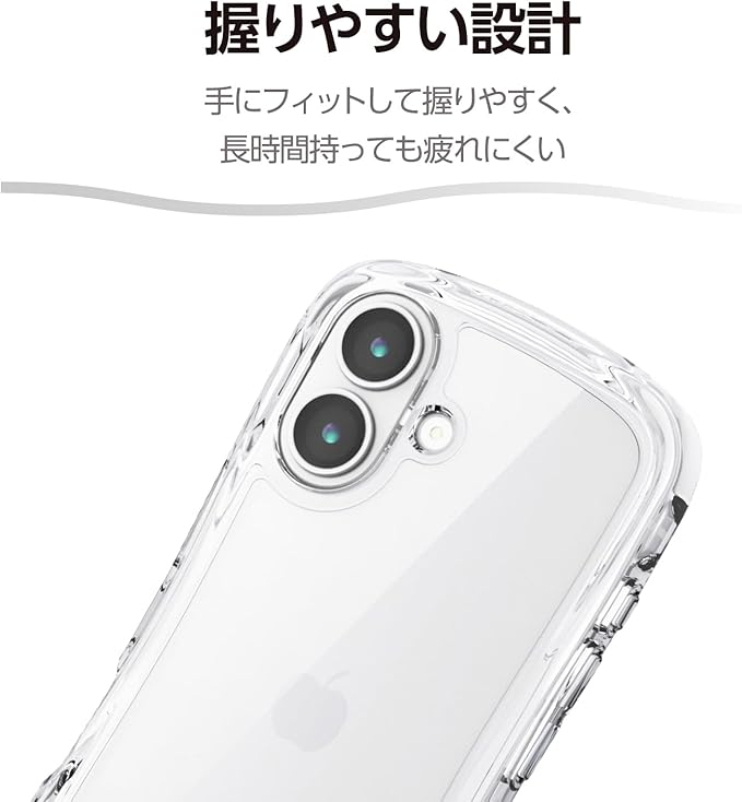 全周に配置した独自設計のエアークッションが衝撃を吸収し、背面には高硬度のポリカーボネート素材を採用。中央のくびれ形状に平坦な面を設けることで、手に馴染む快適なグリップ感を実現したGrippyシリーズの耐衝撃ハイブリッドケースクリアタイプです。