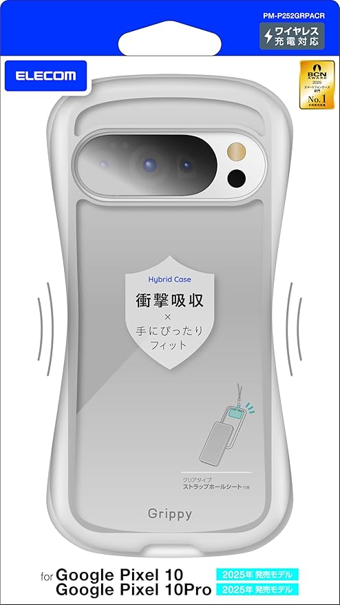 エレコム Google Pixel 10/10 Pro ケース カバー 透明 Grippy 手に馴染む 耐衝撃 衝撃吸収 ハイブリッド TPU ストラップホール付き 硬度5H キズ エアークッション カメラ保護 ワイヤレス充電対応 クリア PM-P252GRPACR